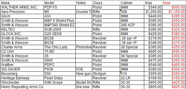 Used gun list as of 10/22/2025, we are getting ready to auction everything on this list…before we do we are marking them down!