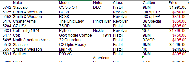 We carry a robust selection of handguns and sporting rifles to meet the needs of every shooter—from first-time buyers to seasoned competitors. Our inventory is constantly evolving, with new models and trusted favorites always in stock. Don’t see what you are looking for? We would be glad to order it for you! Looking to sell? We buy used firearms and entire estates, offering fair market value and hassle-free transactions. With one of the largest inventories in the region, you’re sure to find something that fits your style, purpose, and budget. Prices in red are recently reduced!